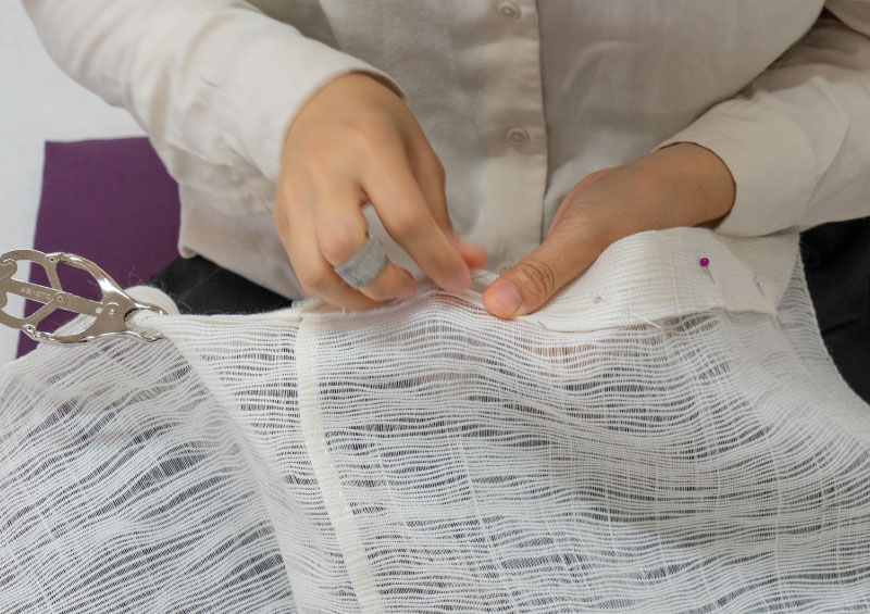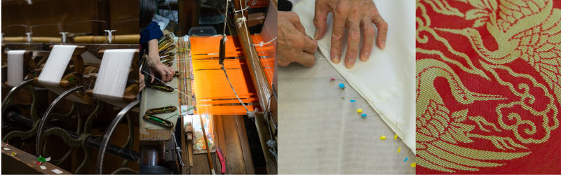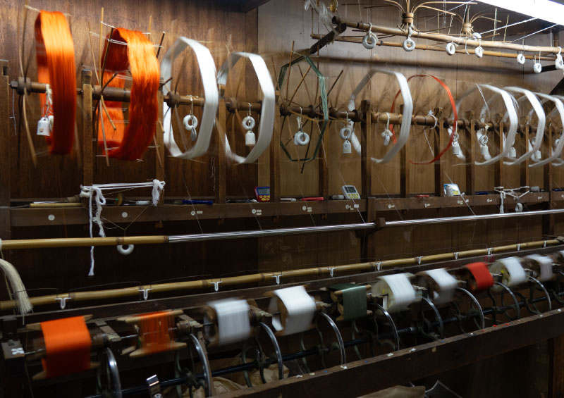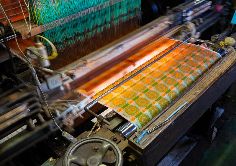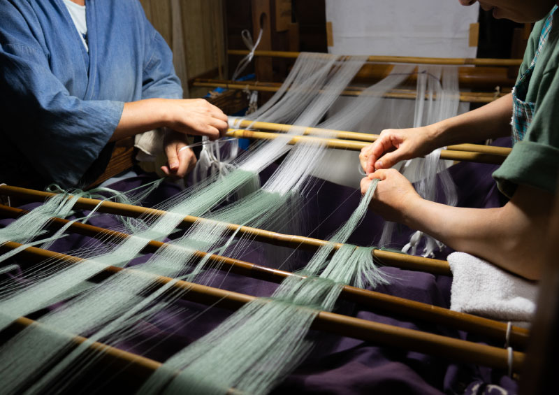 縦糸の間を縫うように緯糸をシャトルで通し、